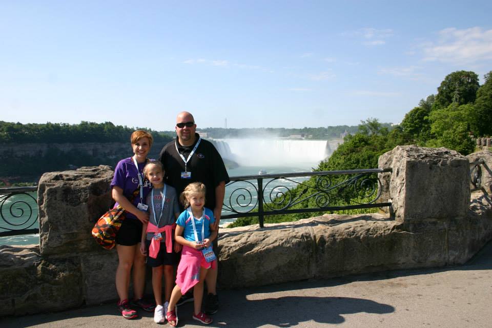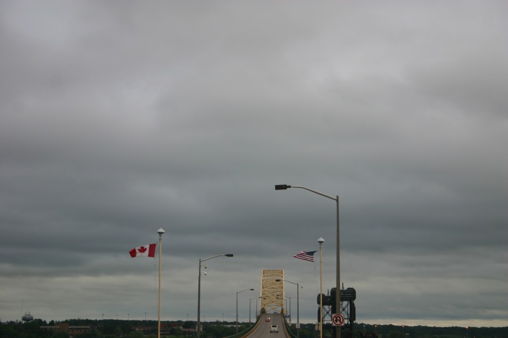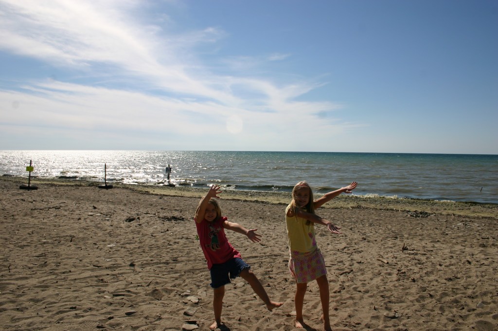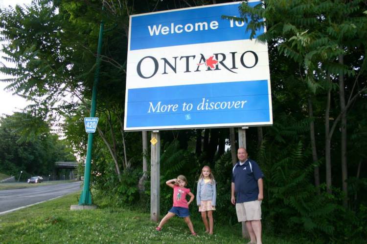 We missed getting a picture with the Ohio sign since it was above the interstate, but we managed to get a picture with the Pennsylvania sign (even though we only drove through a small portion), the New York sign and ONTARIO! Another fun part of this road trip is that we were able to see all 5 of the Great Lakes. I made the girls attempt to make the shape of the beginning letter of each lake so we would remember which lake was in the picture. On this part of the trip we were able to spot Lake Erie.