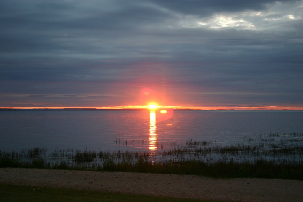 This route will bring you back into the US via Michigan’s upper peninsula by coming across the international bridge at Sault St. Marie (pronounced Soo Saint Marie). We made it at just the right time to catch a beautiful sunset over Lake Superior.